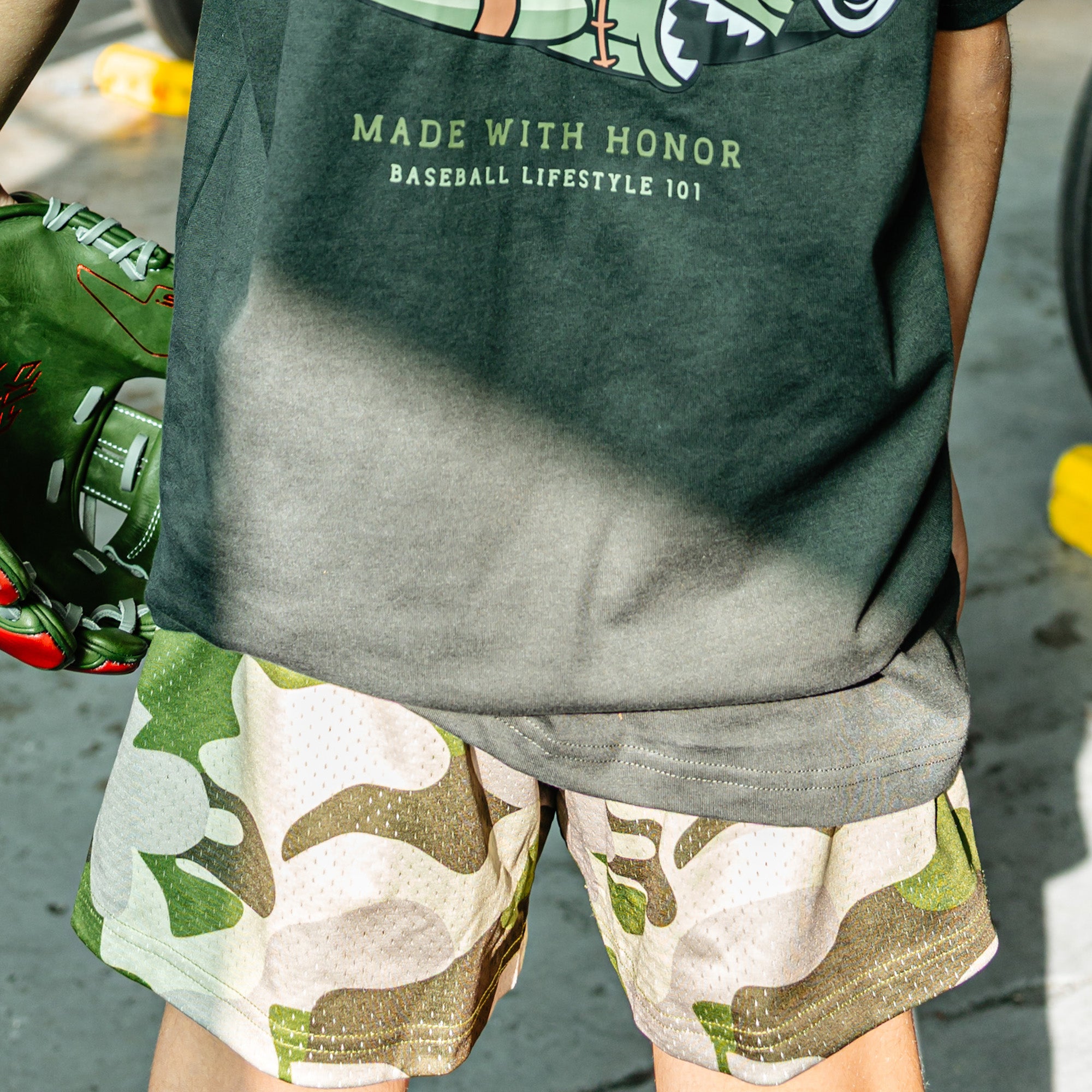 Ready for takeoff, the Flight Deck Shorts bring a camo-inspired look built for players who never back down. Featuring star and stripe detailing with BL101’s signature aviation marks, these mesh shorts are made for comfort and control whether you’re training, traveling, or chilling postgame. The Flight Deck Shorts are your go-to gear for every mission on and off the diamond. Mesh shorts Allover pattern Side pockets Drawstrings at the inner waistband Elastic Trim 100% Polyester 5″ in-seam length