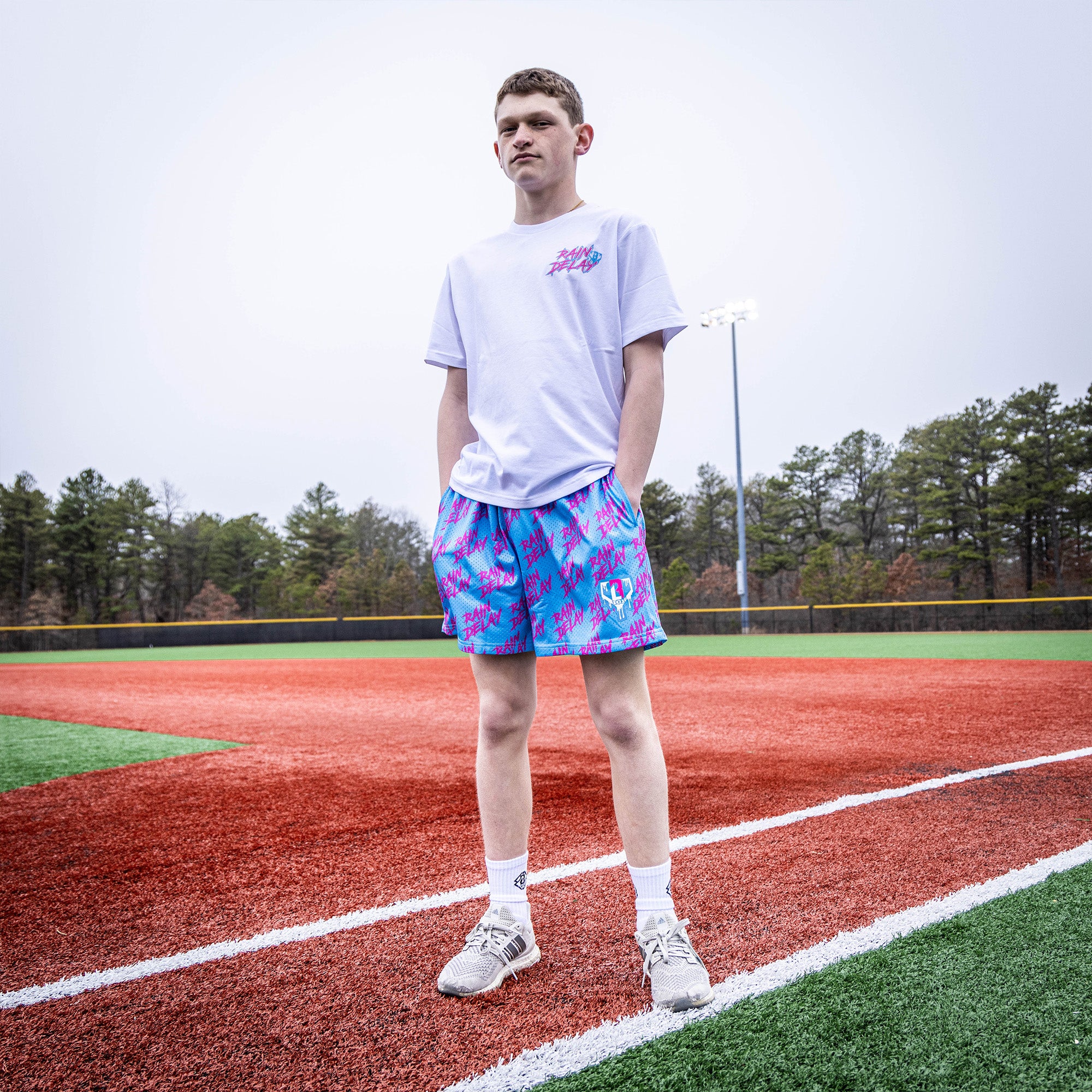 The Rain Delay Shorts – Cotton Candy bring the energy of a late-inning comeback with bold all-over graphics that shout out every ballplayer’s favorite weather delay. With lightweight mesh fabric and the BL101 drip logo at the hem, they’re built for comfort whether you’re in the dugout or just kicking it in the stands. When the skies open up, you’re already winning. Mesh shorts Allover pattern Side pockets Drawstrings at the inner waistband Elastic Trim 100% Polyester 5″ in-seam length