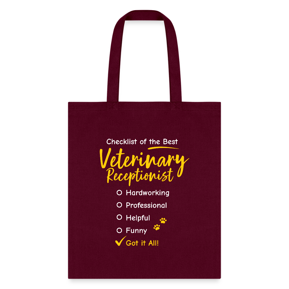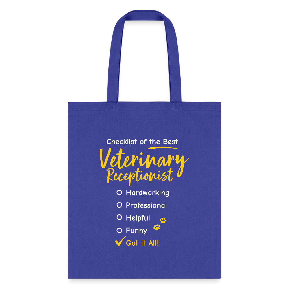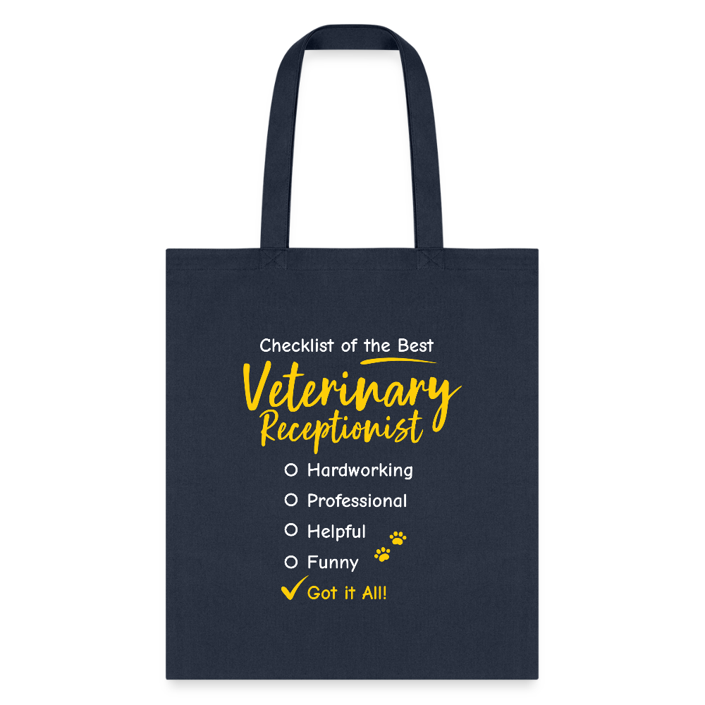 Veterinary Receptionist Checklist Cotton Tote Bag – Vet Staff Gift