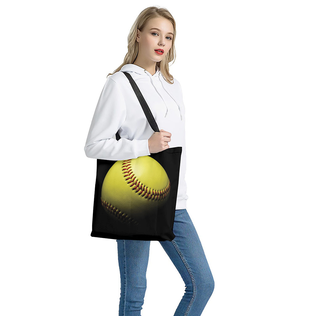 Yellow Softball Ball Print Tote Bag – Polyester Double-Sided Print Shoulder Carry