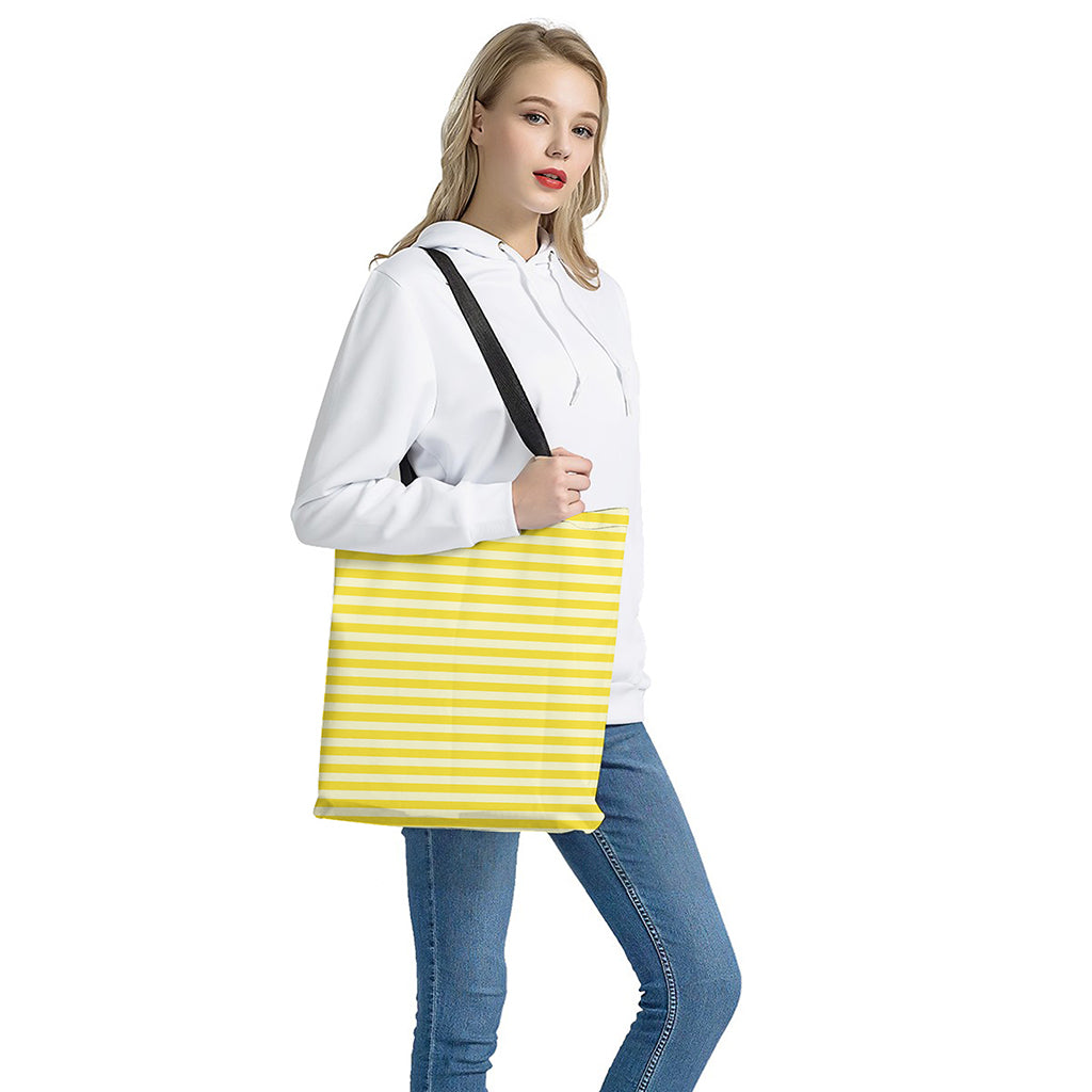 Yellow Striped Pattern Print Polyester Tote Bag with Double-Sided Print