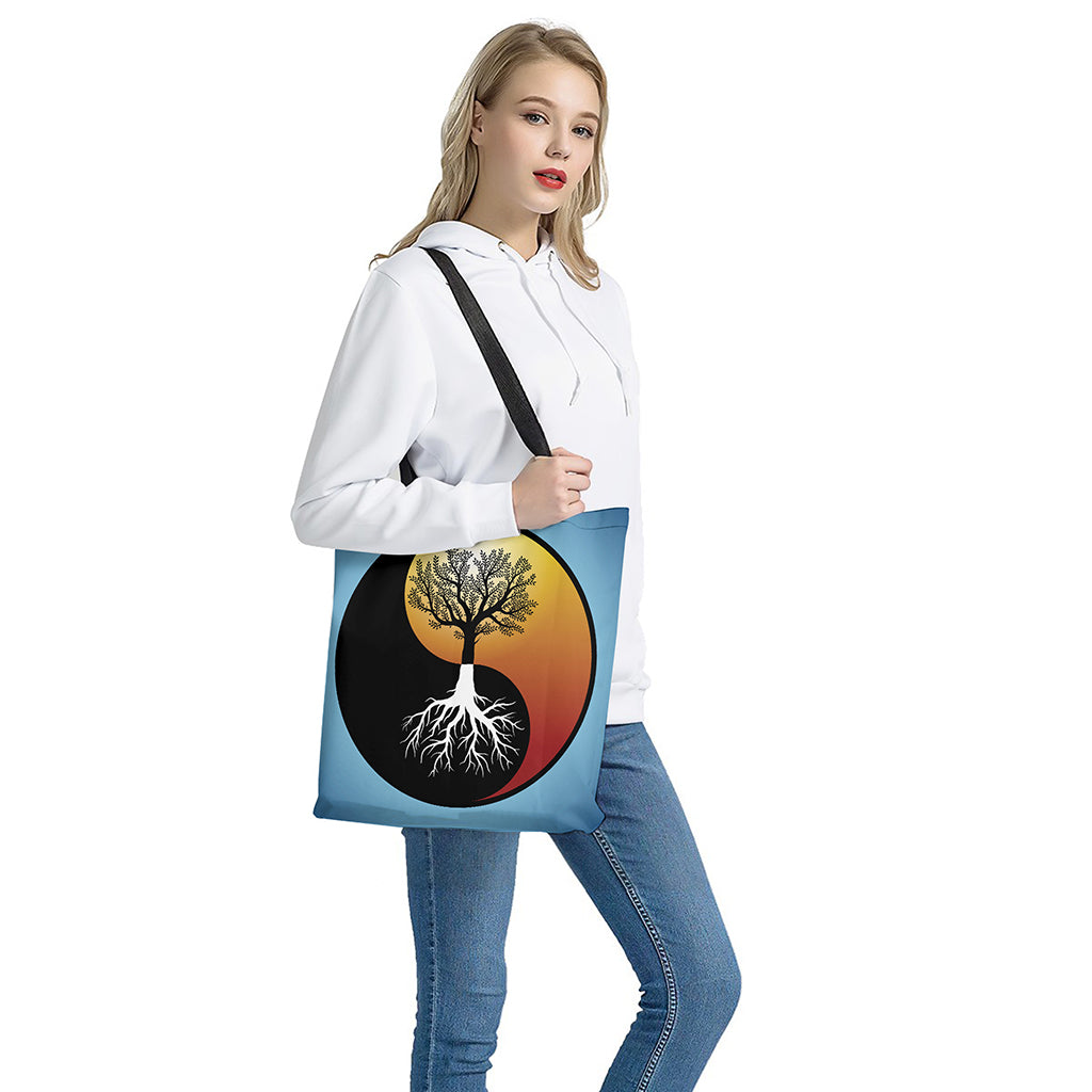 Yin Yang Tree of Life Print Tote Bag – Polyester Double-Sided Lightweight Shoulder Bag